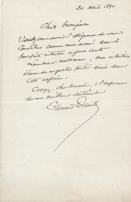 XIX-XXe s. Edouard Detaille se constitue partie civile lettre autographe signée