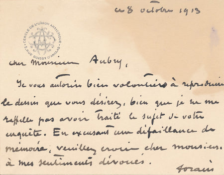 XIX-XXe s. Jean-Louis FORAIN autorise mais ne se souvient pas carte autographe signée