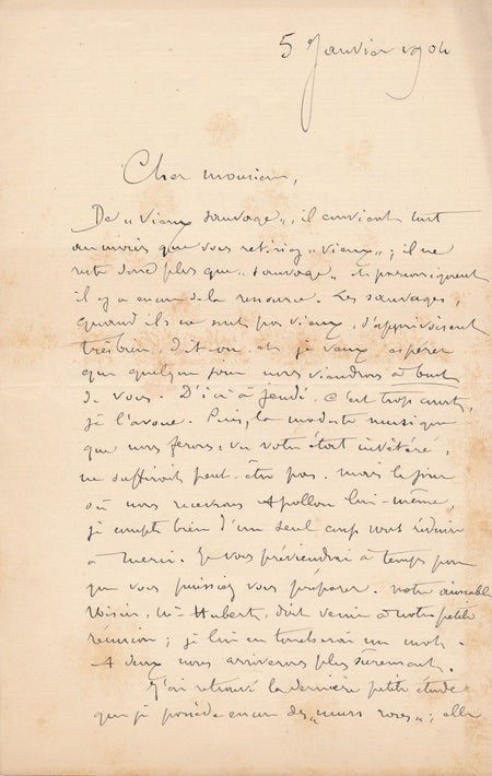 XIX-XXe s. Denys Puech 2 cartes de visite autographes à Georges Radet pour visite d'atelier
