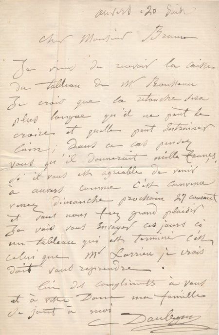 XIXe s. graveur François Reverchon lettre autographe signée à William Bouguereau sur le prix Lambert €60,00
