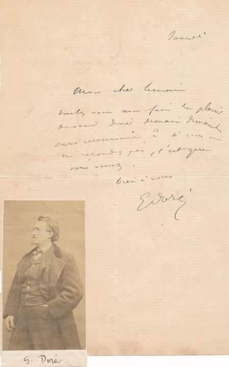 XIXe s. peintre Gustave Doré invite sans cérémonie lettre autographe signée et carte photo Carjat €200,00