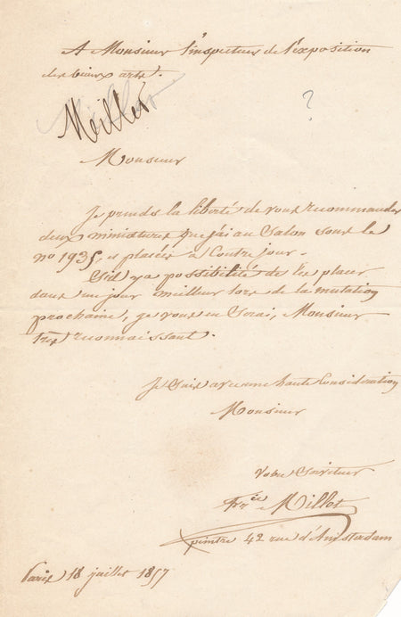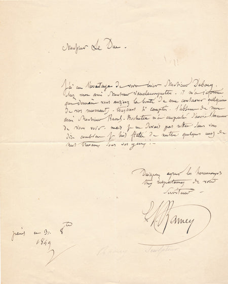 XIXe s. le sculpteur Etienne Jules RAMEY a vu Raoul Rochette et Debay lettre autographe signée €90,00