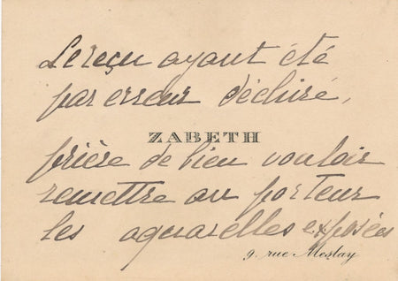 Élisabeth Zabeth peintre aquarelliste 2 cartes visite autographe 1 signée