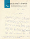 Lettre autographe signée. 1 p. 1/3 in-4. En-tête Les Éditions de Minuit.