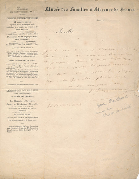 Samuel-Henry Berthoud musée des familles 2 lettres autographes signées