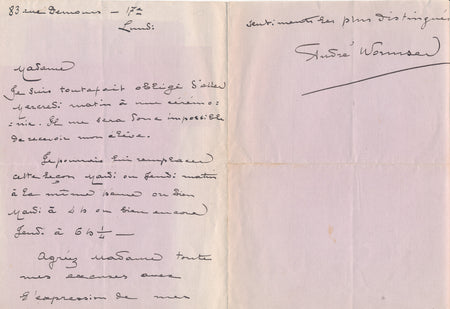 le compositeur André Wormser lettre autographe signée son élève